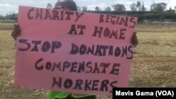 Izisebenzi ezake zasebenza ebhanga le BANC ABC, eselathengwa ngabe Atlas Mara, zitshengisele esigodlweni salelibhanga emzini we Mt Pleasant, zisekelwa ngabenhlanganiso emela izisebenzi zemabhanga eye Zimbabwe Banks and Allied Union ( ZIBAWU ), amapholisa ohlangothi lwe riot ebabhekile, emi esangweni.